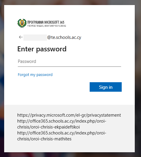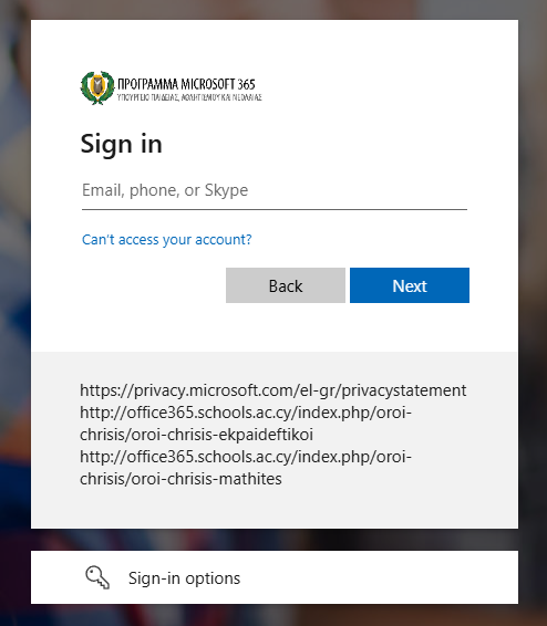(α) Επισκεφθείτε τον ιστοχώρο https://microsoft365.schools.ac.cy και επιλέξτε